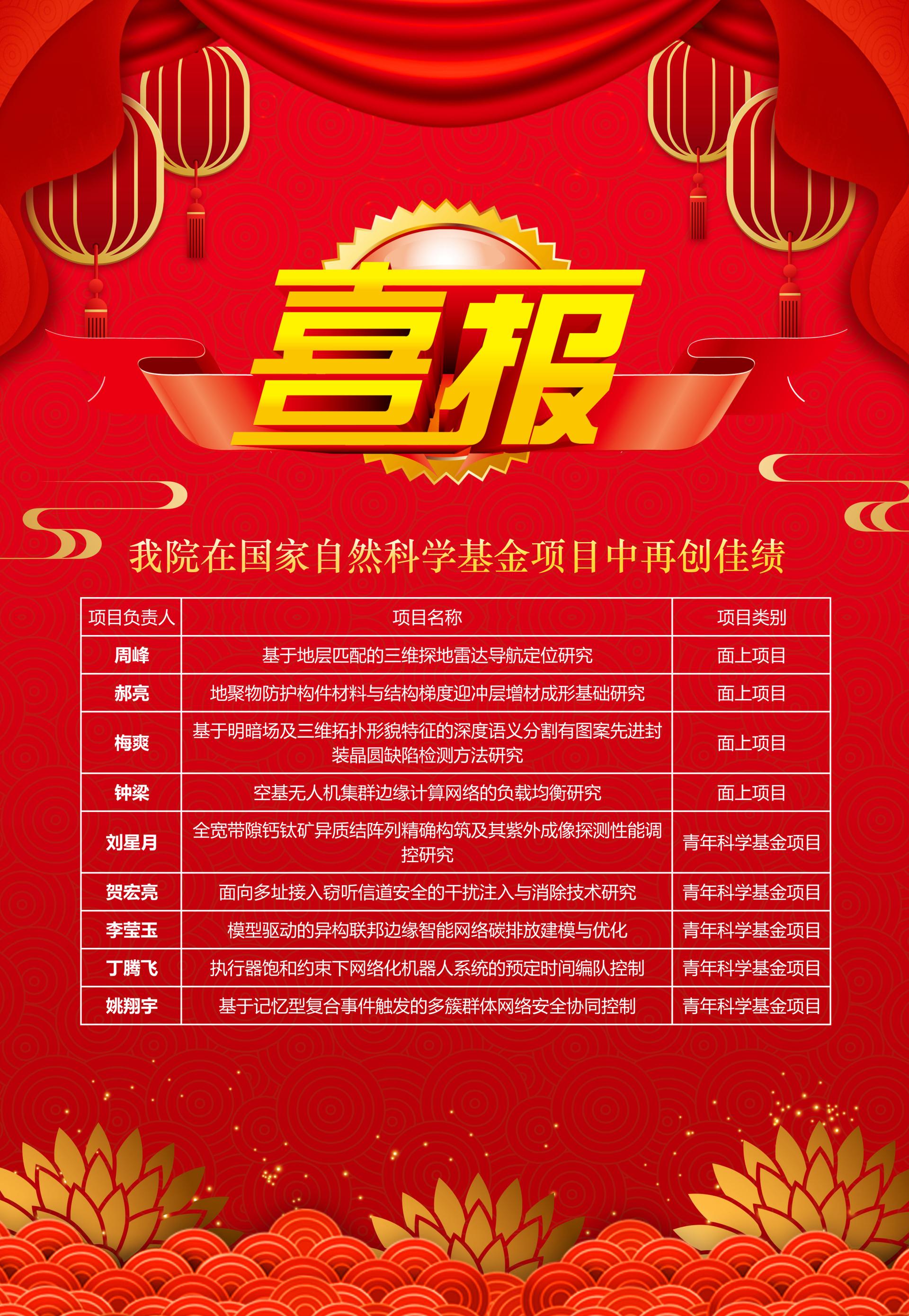 日前,国家自然科学基金委员会公布了2023年度国家自然科学基金申请项目评审结果,从学校科学技术发展院获悉,开云体育官网 共有9个项目获得资助,其中面上项目4项、青年项目5项,项目获批数量和经费再创新高。 周峰老师申报的《基于地层匹配的三维探地雷达导航定位研究》、…