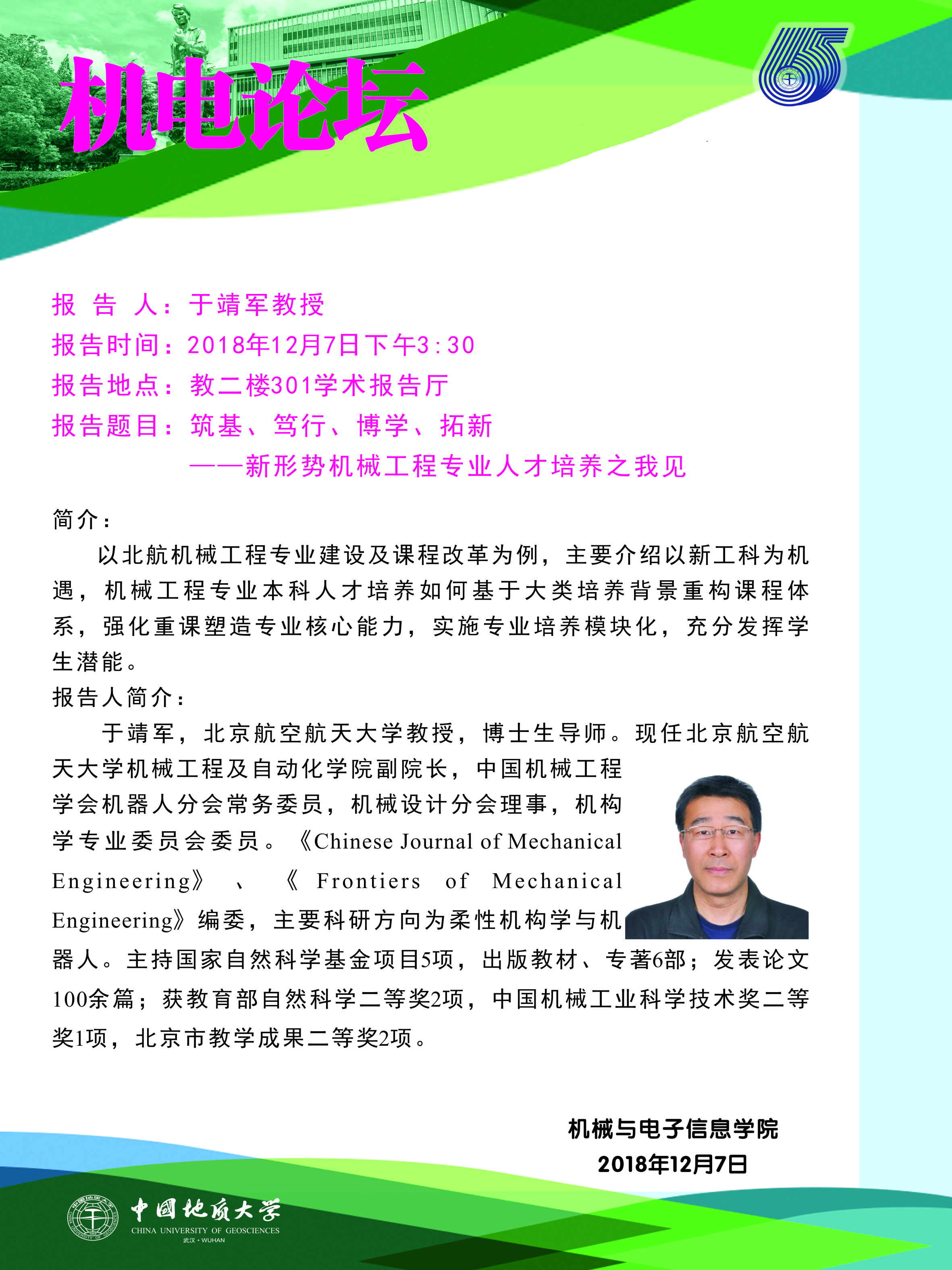 机电论坛:北航于靖军教授来开云体育官网 作报告