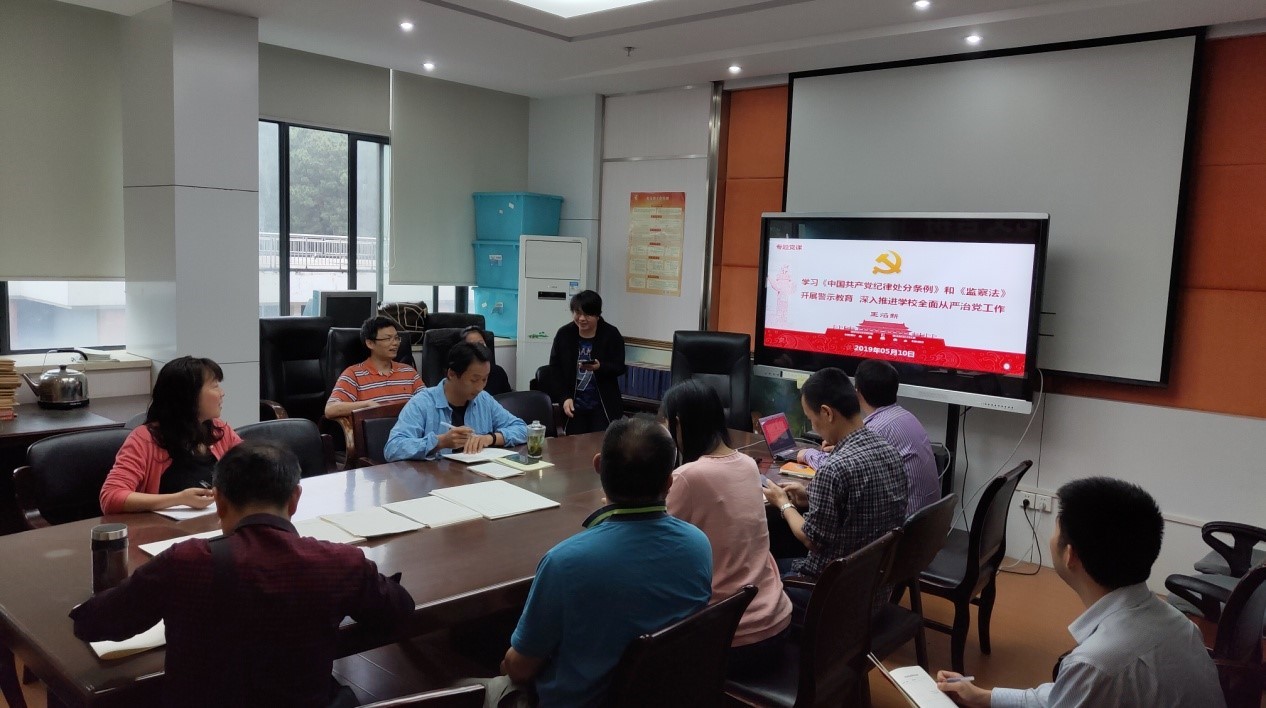 各教工支部分别通过支部大会学习了王焰新校长5月10日讲授的题为《学习<中国共产党纪律处分条例>和<监察法> 开展警示教育 深入推进学校全面从严治党工作》的专题党课内容。