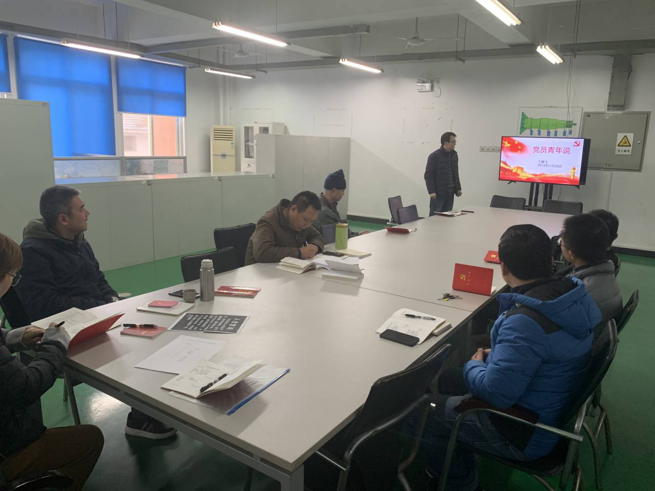 中心党支部丁腾飞同志借“不忘初心,牢记使命”主题教育的契机,以“党员青年说”为题,上了一堂精彩的党课。党课中强调了青年党员应“坚定信念,不忘初心”,认真钻研,刻苦学习,脚踏实地,做好本职工作,倡导“合格的党员永远在路上”。