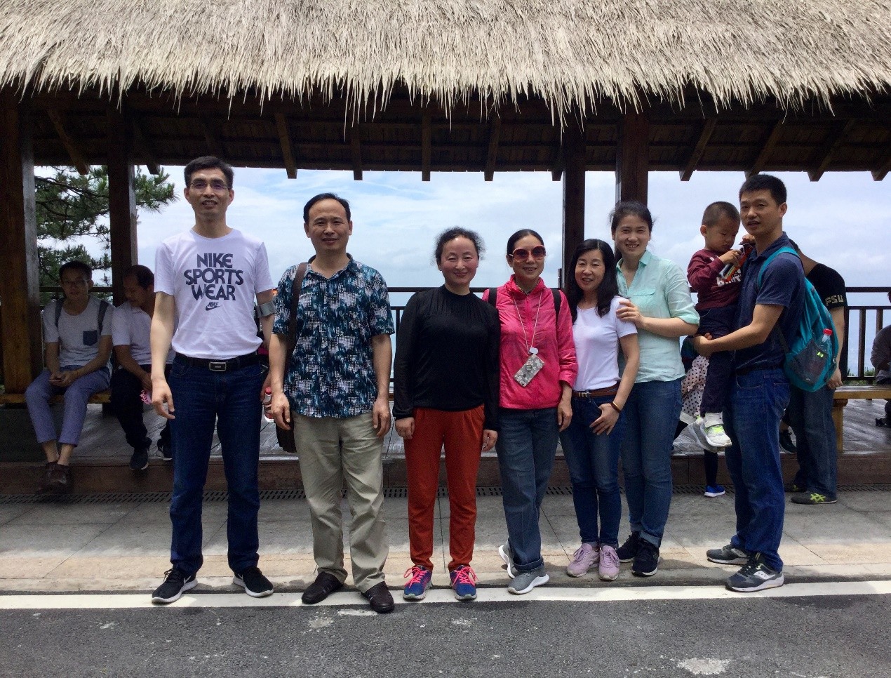 经过2个半小时车程,顺利到达双峰山森林公园。沿着蜿蜒的山路,六辆电瓶车承载着谈笑风生的可爱的老师们,抵达主峰脚下,老师们们兴致勃勃向主峰攀登。欢声笑语沿着山梁行进,愉快的气氛飘荡在幽静的山林。骄阳躲进云层,花鸟相伴左右。沿途风景秀美,不时跳出林立陡峭的怪石,忽现层叠葱郁的林木,身旁花香鸟语,碧水涌翠,美不胜收。不知不觉间,登上了主峰的回宫阁,凭栏远眺,“仙源”美景目不暇接,无限风光尽收眼底,真恰似“河流如束带,田舍若棋盘”。
