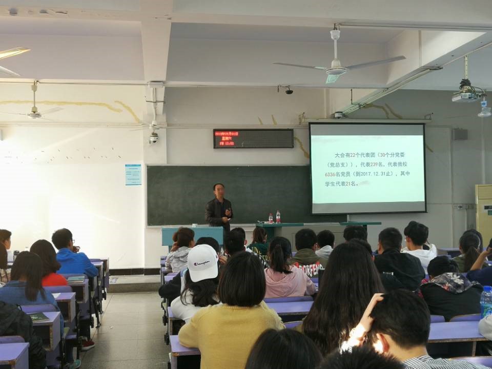 分党校第26期入党积极分子培训班第三讲在教三701举行。自动化学院党委书记董浩斌教授为入党积极分子授课,主题为《学习党的“十九大”精神,落实学校党代会决议》。