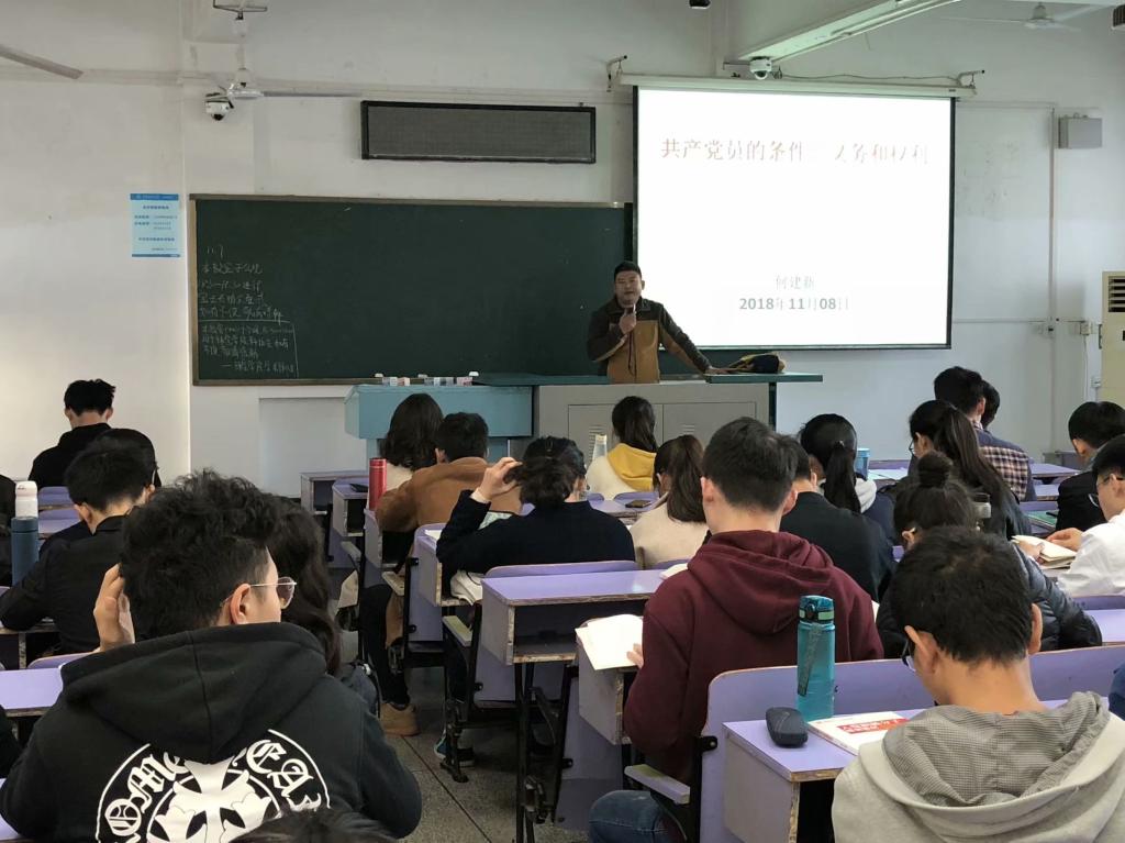 分党校第二十六期入党积极分子培训班第六讲在教三楼401进行。本次课程的主题是《共产党员的条件、义务和权利》,自动化学院党委副书记何建新老师担任主讲。