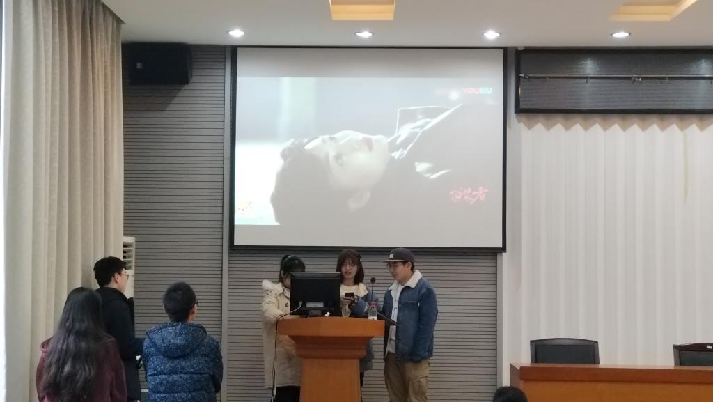 第一个“影视配音”环节,各组队员根据自己对影视作品和真实历史背景的理解进行了自己惟妙惟肖的配音。来自通信二党支部的“一男一女队”带来的配音片段是《风声》,两位选手声情并茂的配音,女队员富有质感的声音将一个勇敢且有信仰的地下党员的形象鲜活的展示在观众面前。“心中有党队”,虽然只有三个人,却将《芳华》中4个有代表性的片段演绎的淋漓尽致,同时一人分饰三角的精彩表现更是获得了现场观众的热烈掌声。各参赛小组在台上展现出自己的风采,通过自己的声音对红色影片再度阐释经典,有动人煽情的电影片段,可谓精彩纷呈,高潮迭起,给大家上演全新的视听享受!