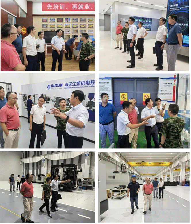 的实习同学。海天大学陈兴校长陪同讲解,向王文起副校长一行介绍了海天大学的教育理念和实训基地。同时会见了张总经理,并参观了宁波海天塑机集团的多个子公司车间厂房,实地考察的工作场景。