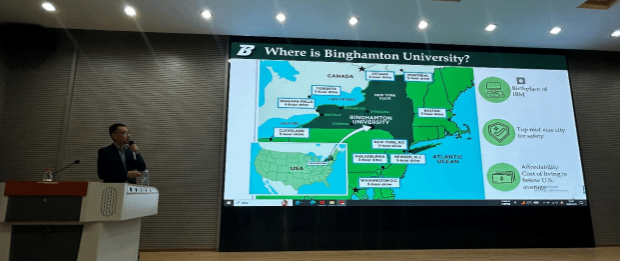 邀请美国宾汉姆顿大学系统科学与工业工程学院汪勇教授,于教二楼301室举办研究生项目专题宣讲会,吸引机械工程、电子信息、通信等专业百余名本硕学生到场参与。