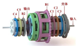 图3新型十三挡行星齿轮变速器构型与原理样机