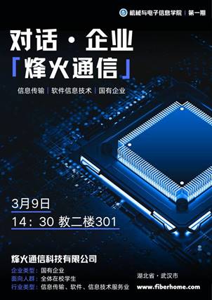 第一期“对话·企业”专题讲座在教二楼301举行。烽火通信科技有限公司人力资源部负责人夏康宁应邀为学院通信专业的130名学生讲授题为《烽火少年 乘烽启航》行业发展动态主题报告。