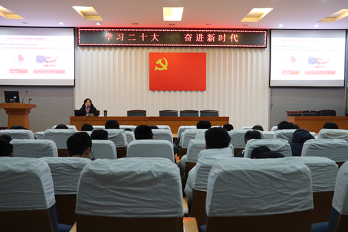 于晓舟从党的二十大报告出发,结合报告主题和报告框架,着重对“新时代十年伟大变革”“开辟马克思主义中国化时代化新境界”“新时代新征程中国共产党的使命任务”“十二个方面新部署”四个方面展开讲述,号召机电学子在深悟党的二十大精神中夯实思想根基、坚定历史自信、增强历史主动。