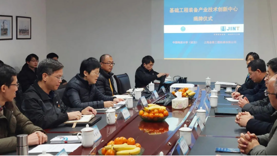 新年伊始,由中国地质大学(武汉)与上海金泰工程机械有限公司共同创建的“基础工程装备产业技术创新中心”在金泰本部正式揭牌成立。中国地质大学(武汉)科学技术发展院副院长吴春明和上海金泰工程机械有限公司党委书记陈雪英分别代表校企双方致词,金泰公司总经理黎隶万和中国地大(武汉)科学技术发展院副院长吴春明为“中心”共同揭牌。