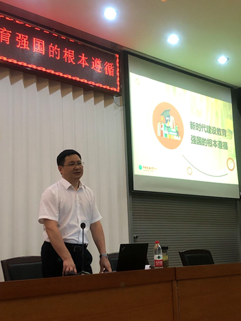 课上,刘杰系统讲述了习近平总书记关于教育重要论述的时代背景、科学内涵和重大意义。他从中华民族伟大复兴战略全局和世界百年未有之大变局两个大局出发,结合学校教育工作实际,从“九个坚持”入手,围绕青年学生历史使命,深入浅出的讲解了在推进党和国家教育事业发展的伟大实践中,应着眼于培养什么人、怎样培养人、为谁培养人这根本问题,强调教育是国之大计、党之大计,坚持立德树人根本任务,培养德智体美劳全面发展的社会主义建设者和接班人。