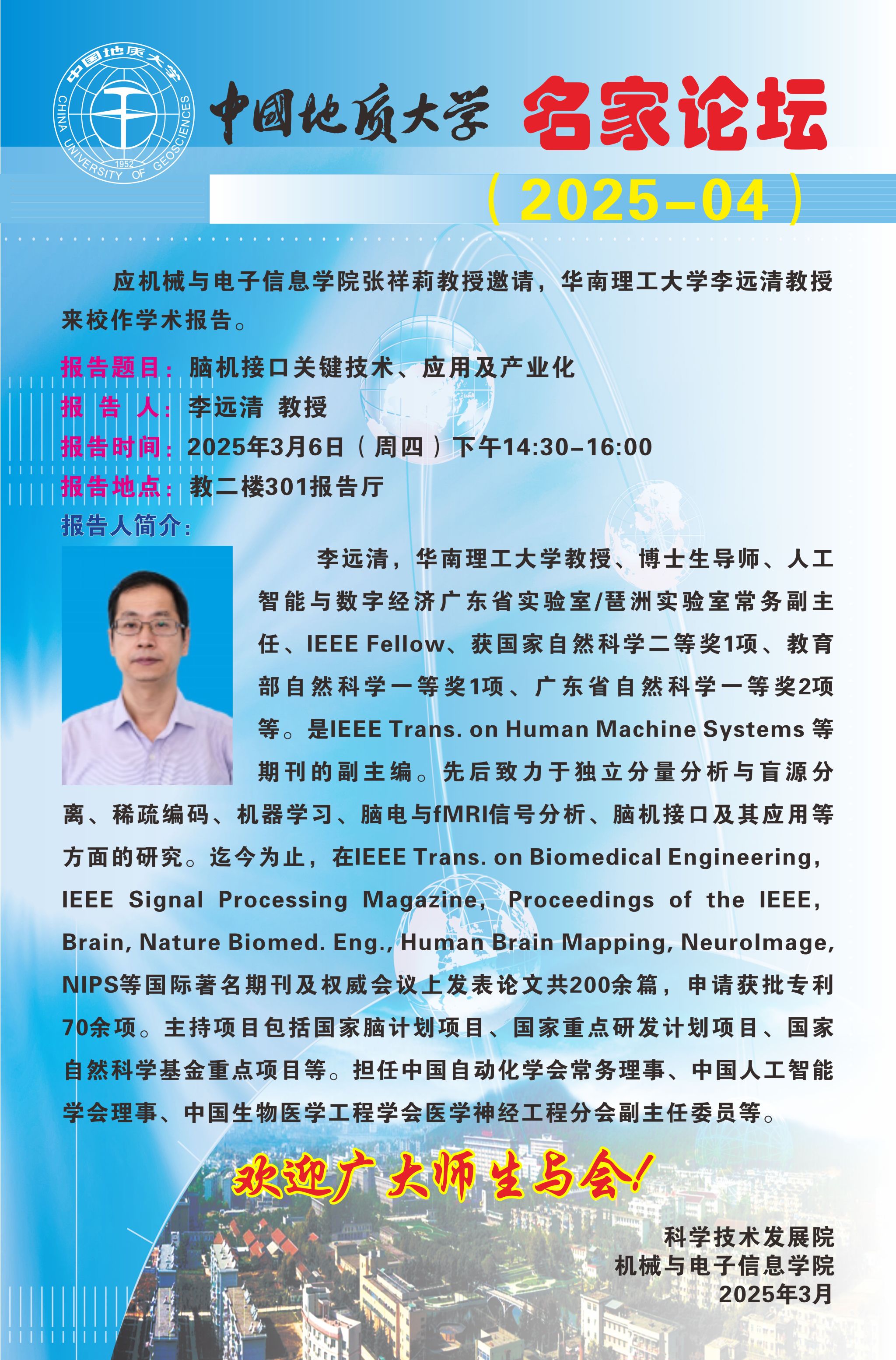 【3月6日】机电讲坛(2025-1):华南理工大学教授李远清来开云体育官网 作学术报告