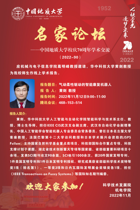 【11月12日】校庆系列学术活动---名家论坛(2022-90):华中科技大学黄剑教授