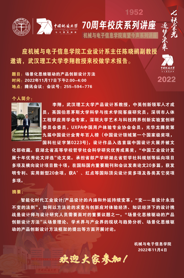 【11月17日】校庆系列学术活动---机电讲坛(2022-24):武汉理工大学李翔教授
