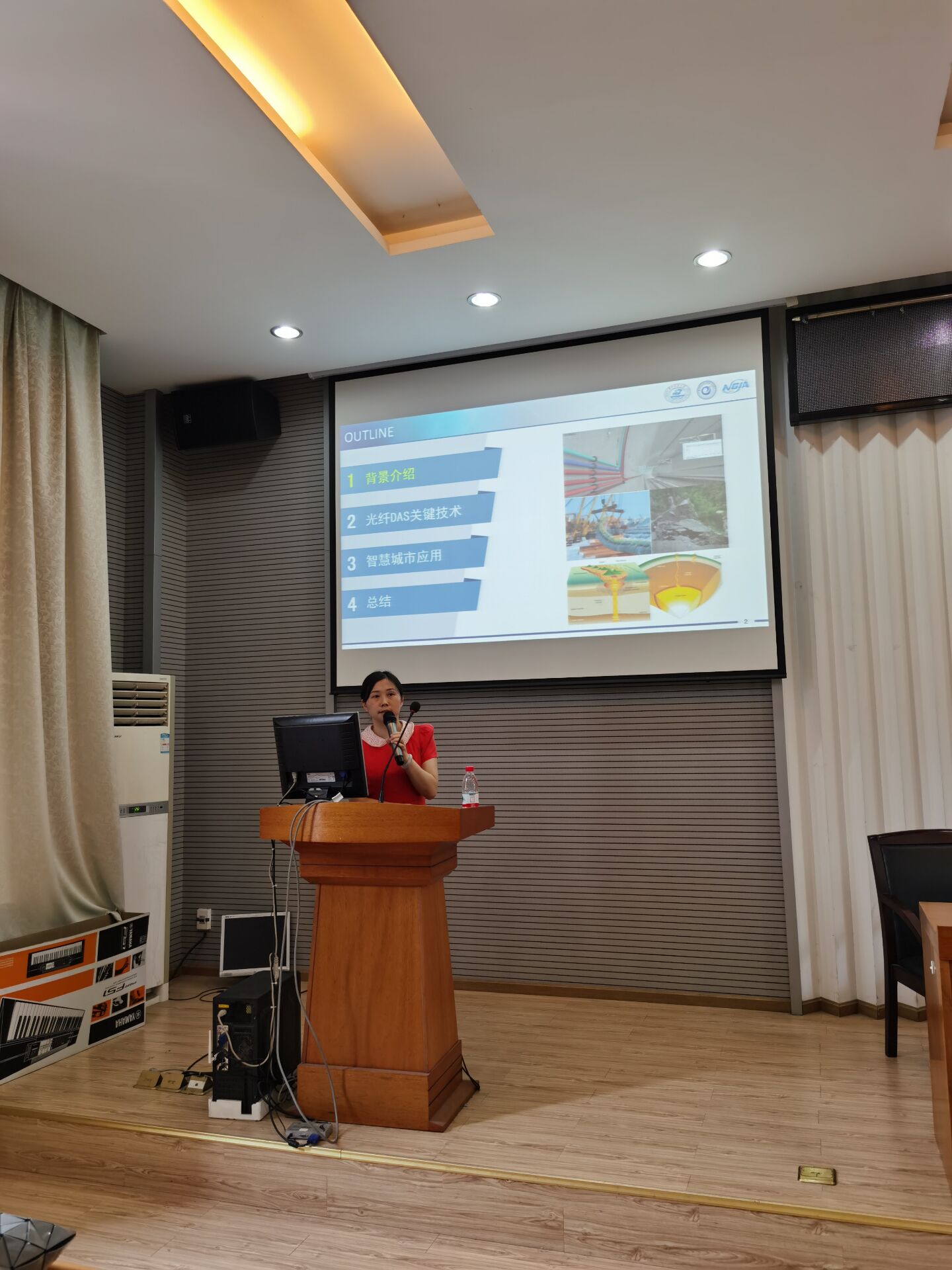 报告主要介绍声波的基本概念,以及声波探测的技术现状和应用瓶颈,并分析了光纤声波传感器的优势;介绍光纤分布式声波传感(DAS)的机理和关键技术,以及孙琪真课题组在长距离、高灵敏、宽频带、高保真光纤DAS方面的研究成果;并探讨利用其实现声学CT的基本原理,以及在地震波记录、地质分析、石油勘探、智慧城市等领域的智慧应用。