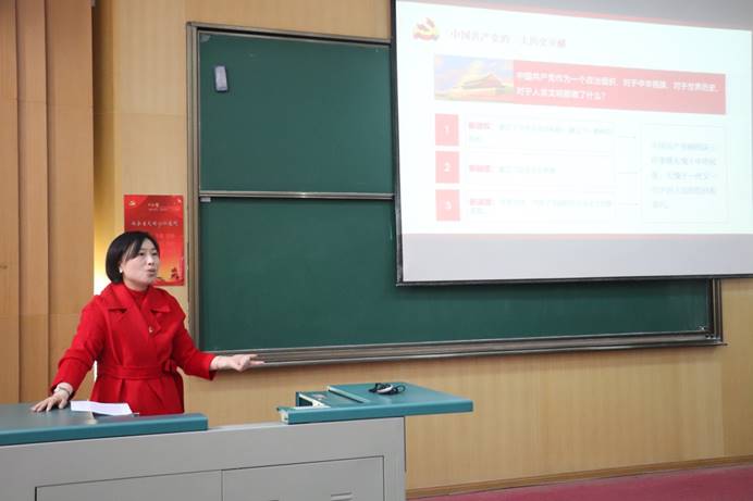 于晓舟讲授了题为《学党史强信念 守初心担使命》的专题党课。她围绕 “中国共产党始终走在时代前列”“中国共产党的三大历史贡献”“中国共产党人的精神谱系”“从党史中汲取青年成长智慧”四个方面阐述了党史学习教育的重要意义。