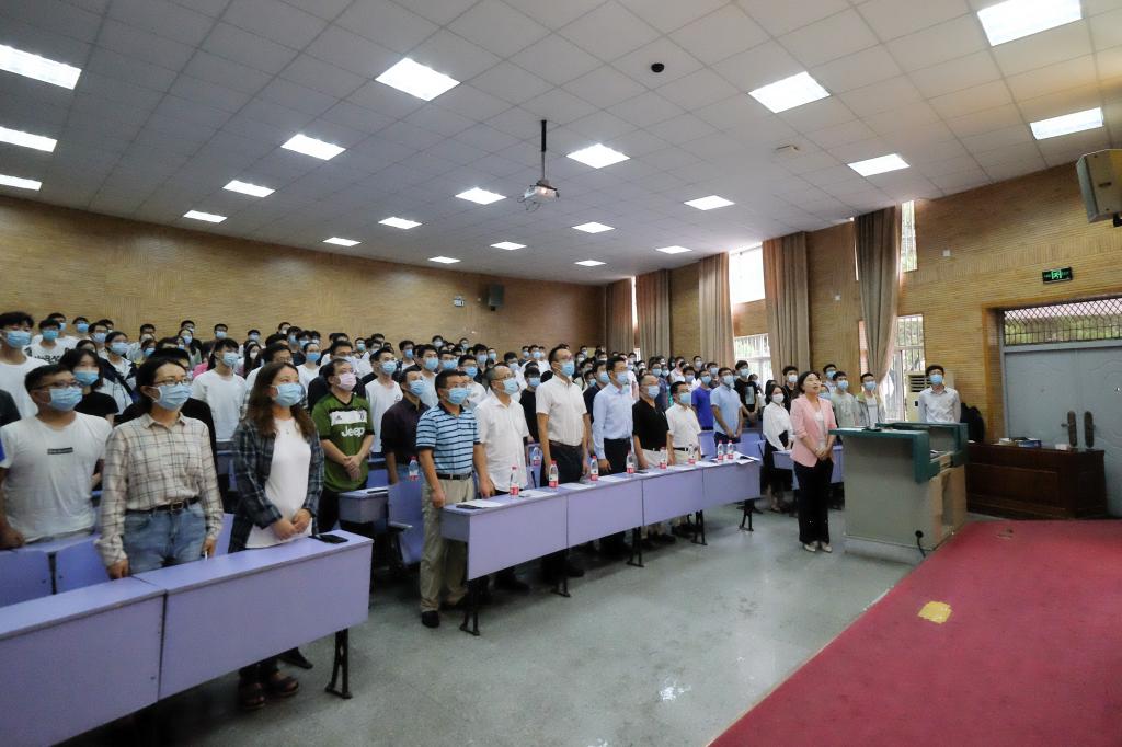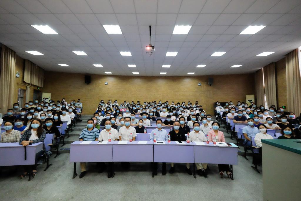 2020级研究生开学典礼在教三楼111举行。院领导瞿祥华、丁华锋、于晓舟、李波、文国军、罗杰、黄田野,各系主任、党支部书记,学院各研究生导师,研究生教学秘书、研究生辅导员及全体2020级研究生参加典礼。