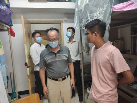 为深入了解同学们返校后的思想、学习和生活情况,提醒指导学生做好科学防控,近日,学院党委书记瞿祥华、党委副书记于晓舟、副院长罗杰、工会主席郝国成带队走访学生宿舍,看望慰问返校学生,研究生导师、本科生班主任、全体辅导员参加走访工作。