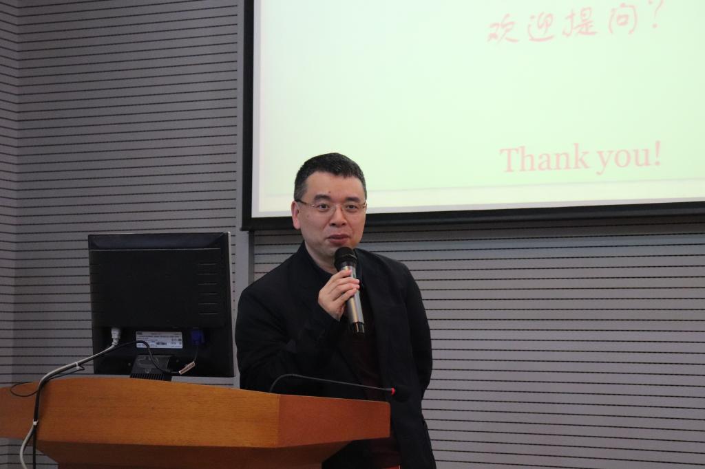 接下来校友黄海晖先生开展《求学与创新之路》主题讲座。黄先生向同学们讲述了自己的求学之路和成立爱贝尔公司的一些经历,并告诉同学们如果想要创业,就要更多地去培养自己的兴趣爱好,多去充实自己,这样才会有更多的机会,才能取得更大的成就。黄先生讲话完毕后,进入提问环节。针对同学们所提出的问题,他都耐心细致地一一为同学们解答,并鼓励同学们多读书,扩充自己的知识面,学会融入各学科知识去创新,经过不懈的追求,总有一天会赢得成功。