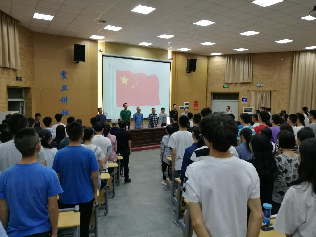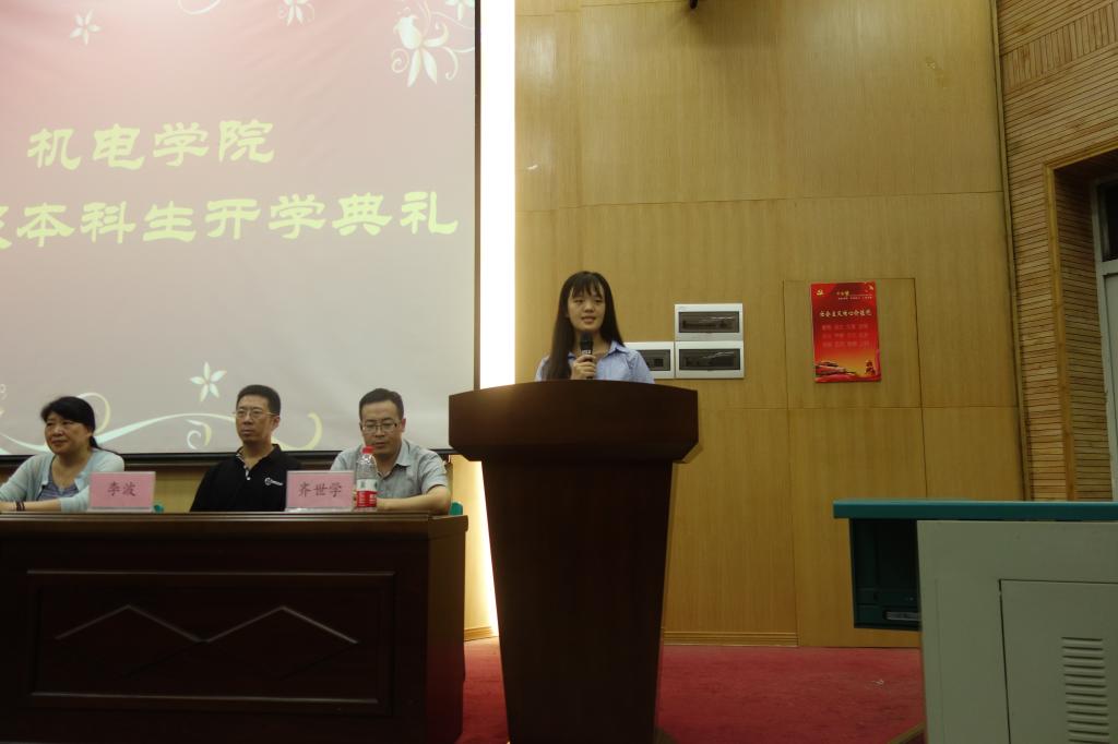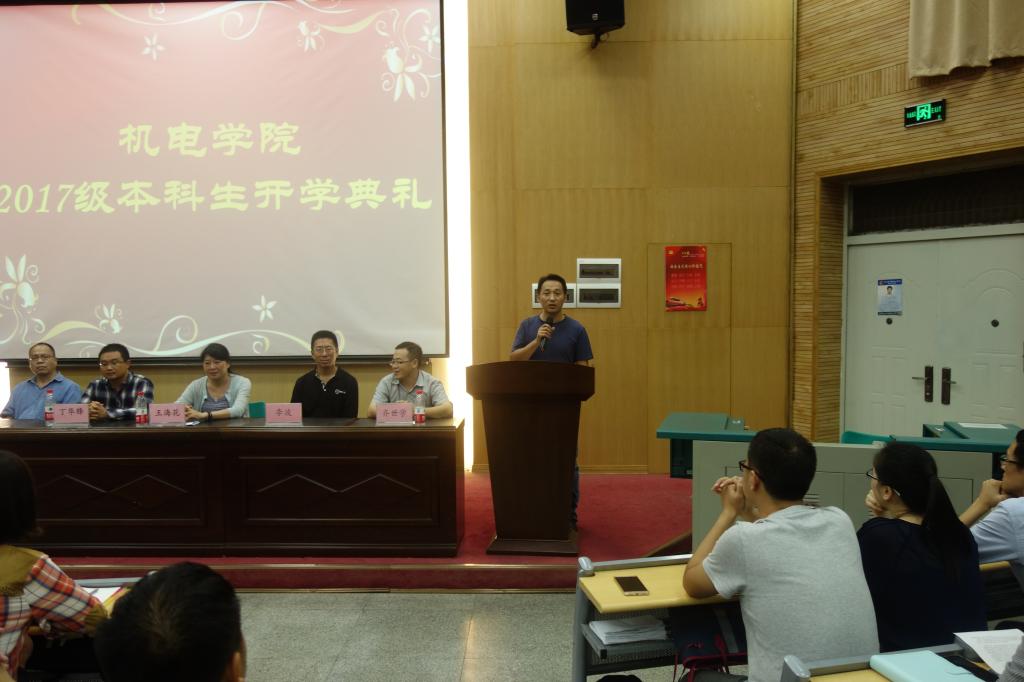 2017级本科生开学典礼在教三楼109举行。院党委书记王海花、院长丁华锋、副院长李波、黄田野、罗杰、院党委副书记齐世学、教师代表郝国成出席典礼。