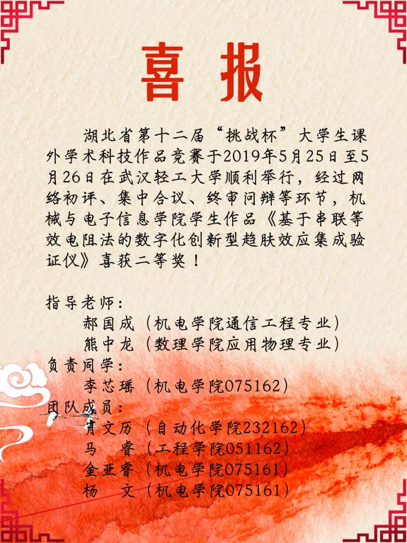 [2019年6月]开云体育官网 学生作品荣获第十二届“挑战杯”湖北省二等奖