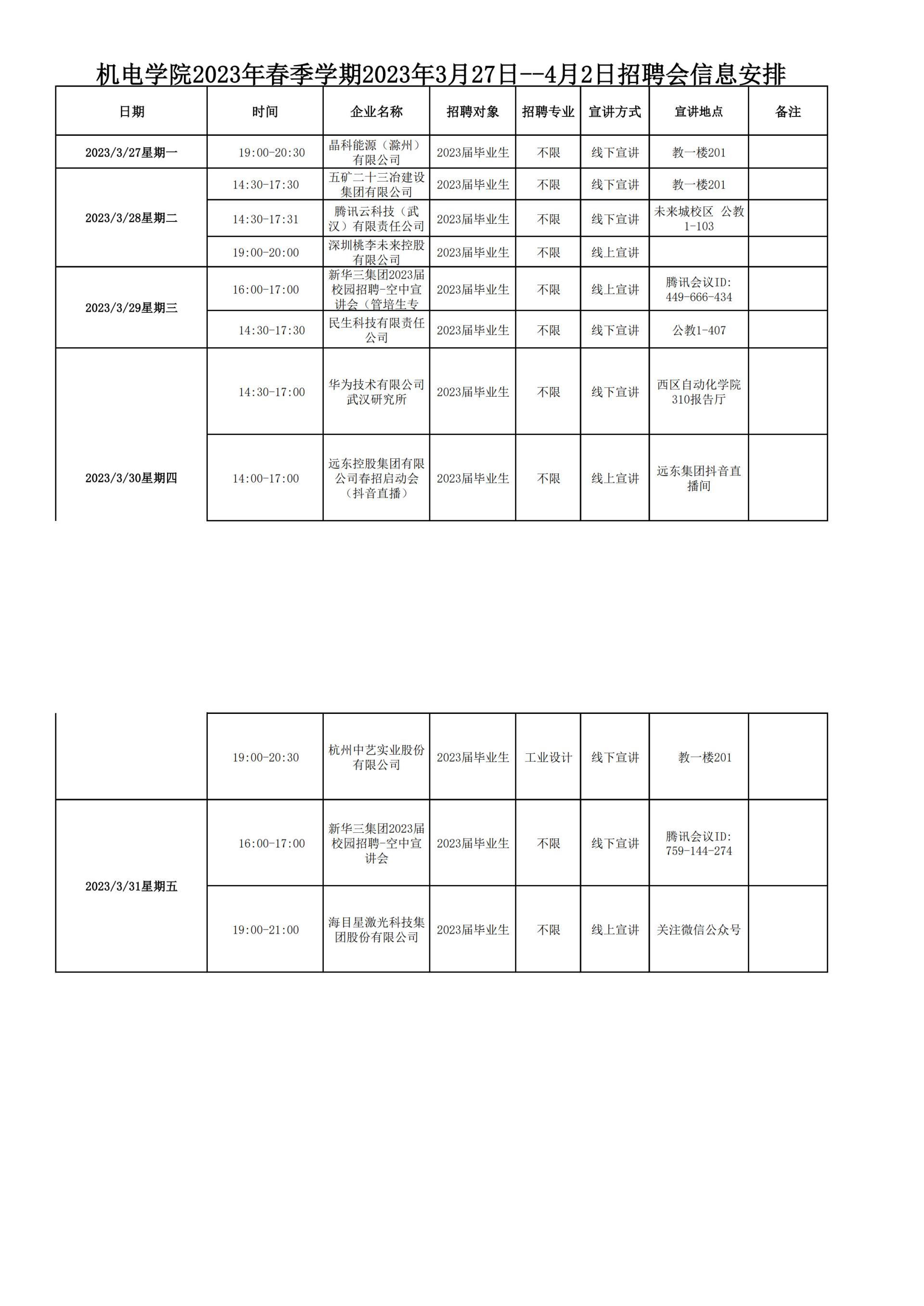 【毕业生·2023年3月27日--4月2日招聘会信息】