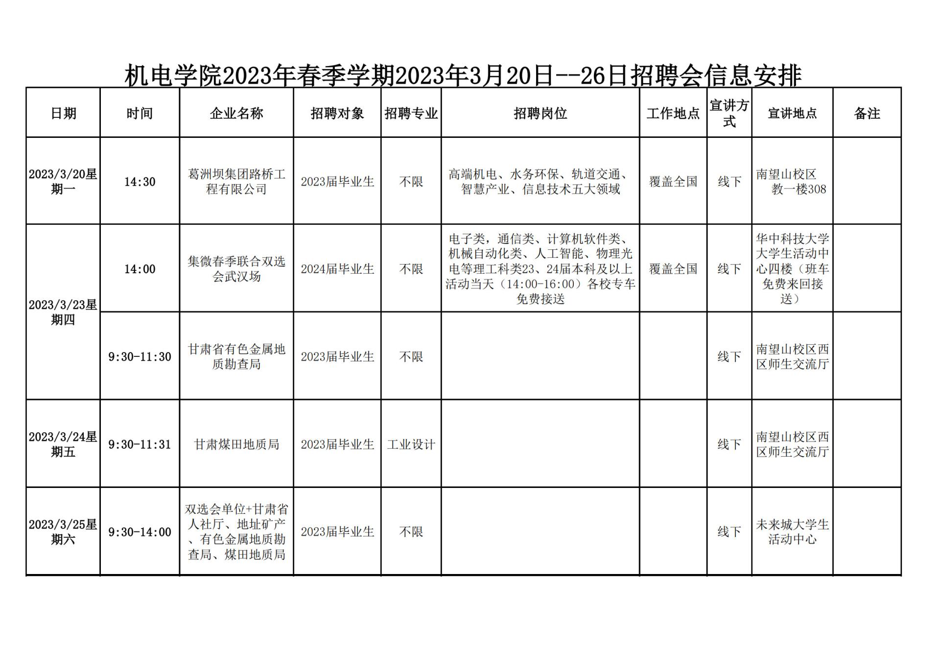 【毕业生·2023年3月13日--18日招聘会信息】开云体育官网 2023年春季学期2023年3月13日--18日招聘会信息安排