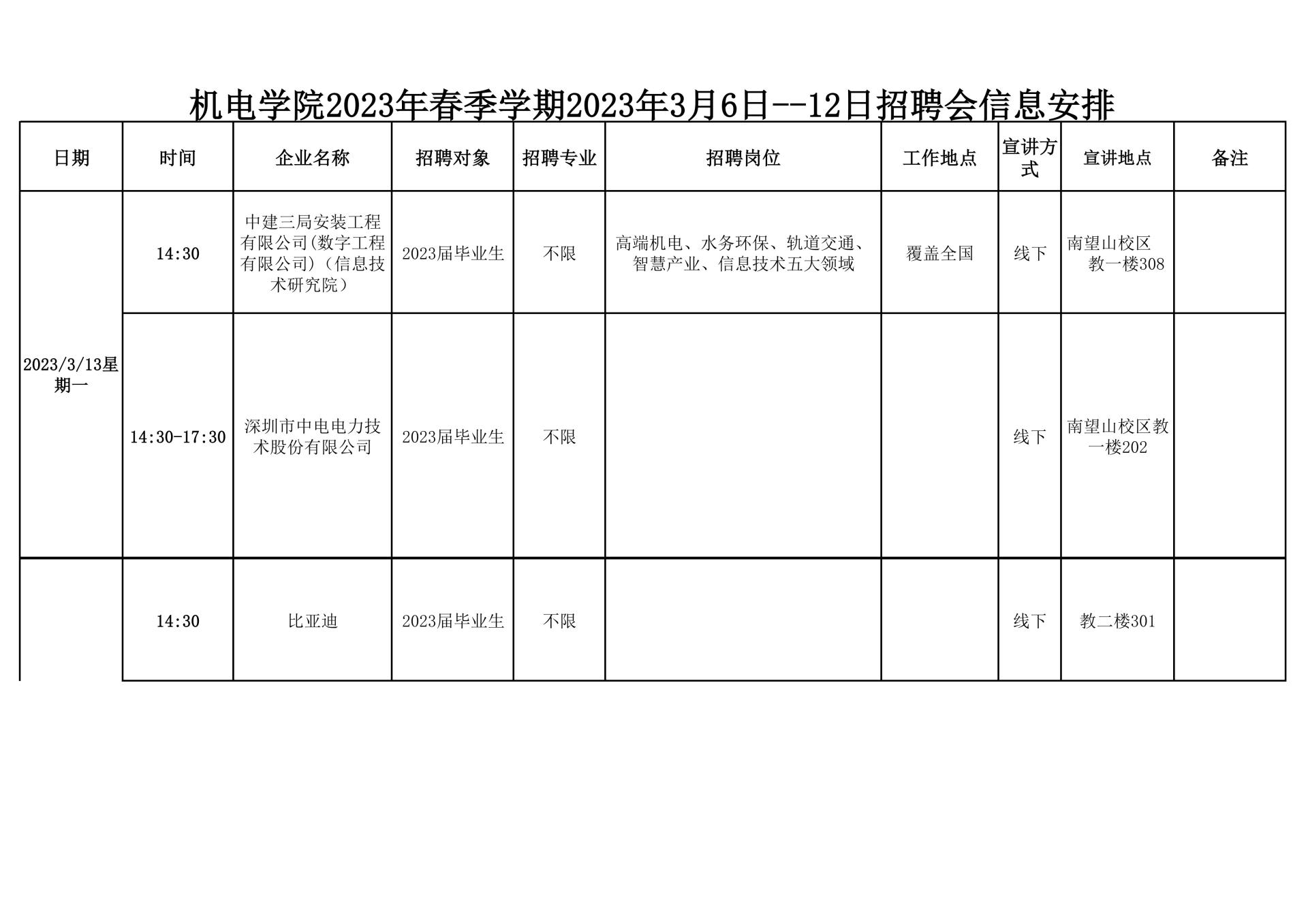 【毕业生·2023年3月13日--18日招聘会信息】开云体育官网 2023年春季学期2023年3月13日--18日招聘会信息安排